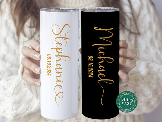 Personalized Mr & Mrs Wedding Tumbler Set - Custom Travel Cups for Newlyweds