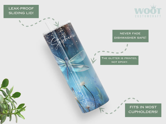 Personalized Floral Dragonfly Tumbler - Unique Gift for Dragonfly Lovers & Her