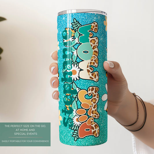 Personalized Dog Mom Tumbler - Retro Flower Design with Glitter