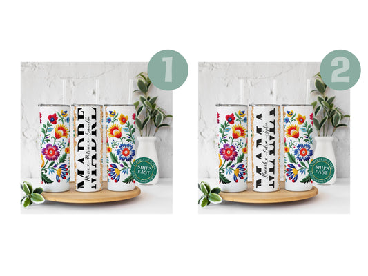 Personalized Madre Tumbler with Kids Names Custom Dia De Las Madres Gift Mexican Embroidery Design