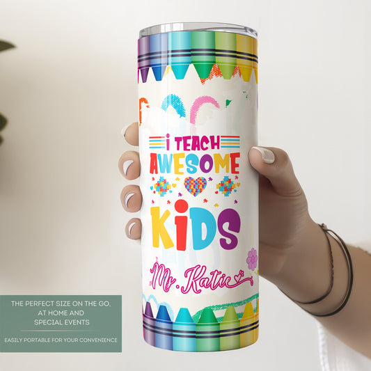 Personalized Autism Awareness Teacher Tumbler - Gift for Educators of Awesome Kids