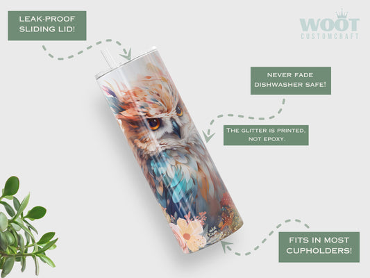 Personalized Floral Owl Tumbler - Cute Custom Gift for Owl Lovers