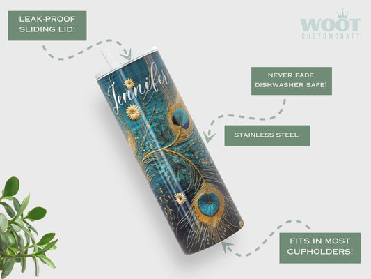 Personalized Peacock Tumbler - Custom Embroidered Travel Cup for Peacock Lovers