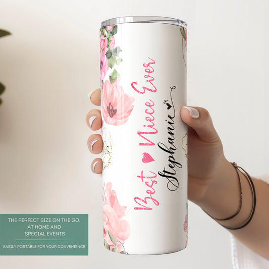Personalized Floral Niece Tumbler - Custom Gift from Aunt and Uncle