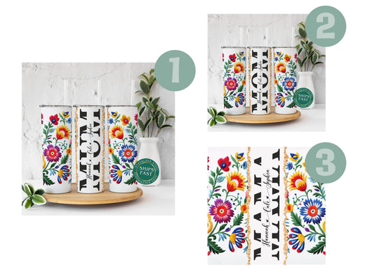 Personalized Mum Tumbler - Mexican Embroidery Gift with Kids' Names for Birthday