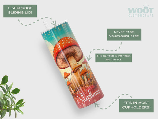 Personalized Mushroom Travel Tumbler - Cute Gift for Mushroom Lovers