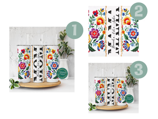 Personalized Mom Tumbler with Mexican Embroidery - Floral Design Unique Travel Mug Gift for Mom