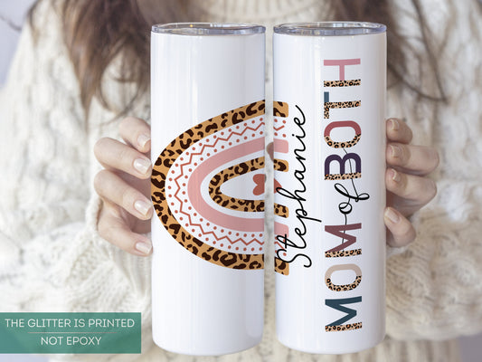 Personalized Mom of Both Tumbler with Kids' Names - Custom Leopard Design for Boy & Girl Moms