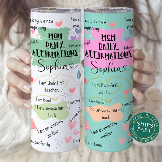Personalized Mom Affirmation Tumbler - Daily Love Travel Mug Gift for Moms