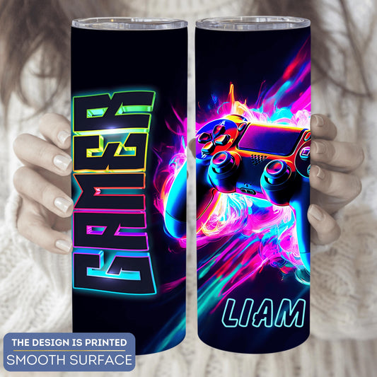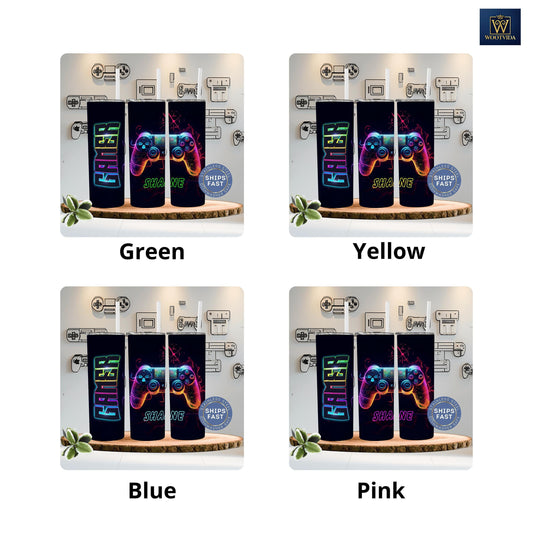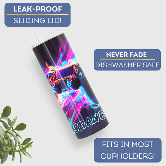 Personalized Gaming Tumbler - Custom Neon Gamer Cup for Birthdays