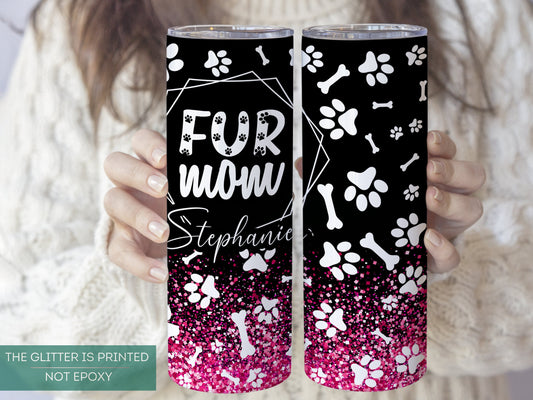 Personalized Fur Mom Travel Tumbler - Custom Paw Print Gift for Pet Lovers