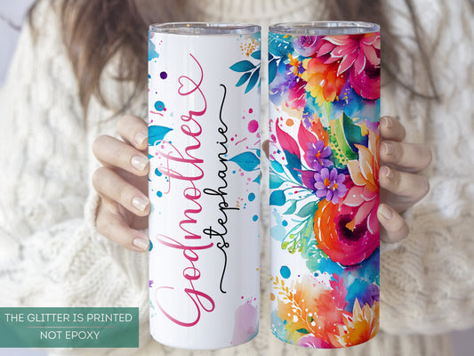 Personalized Godmother Tumbler - Custom Floral Gift for Godmom