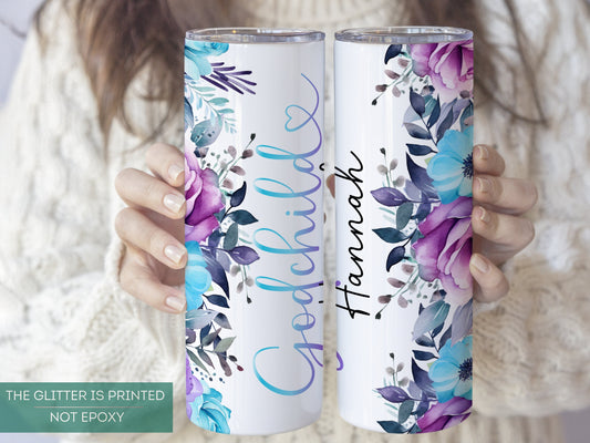 Personalized Godchild Tumbler - Unique Travel Mug Gift with Floral Design