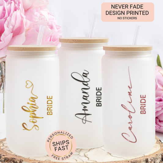 Personalized Bride Frosted Glass Tumbler - Bridesmaid Proposal Gift