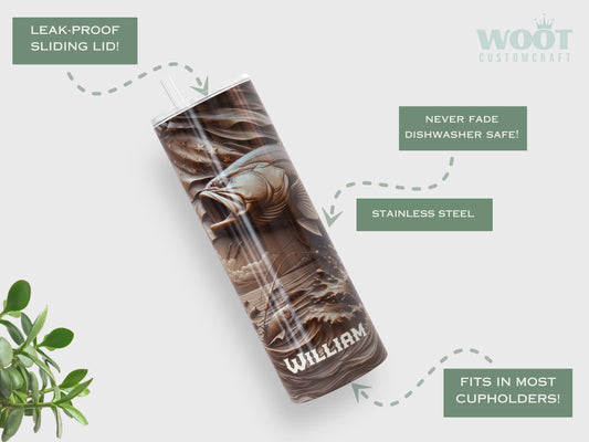 Personalized Bass Fishing Tumbler - Custom Gift for Fishermen & Bass Fishing Dads