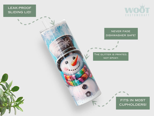 Personalized Blue Snowman Tumbler - Cute Christmas Gift for Her