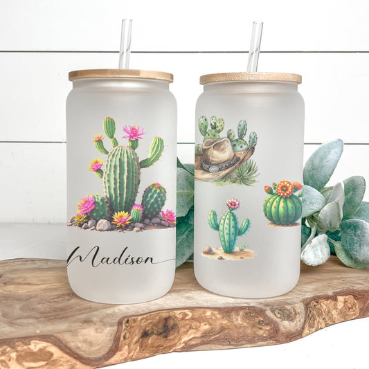 Personalized Cactus Frosted Glass Cup - Custom Tumbler for Iced Coffee Lovers