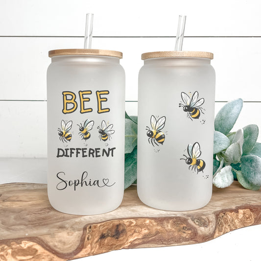 Personalized Bee Glass Tumbler - Custom Iced Coffee Cup for Bee Lovers