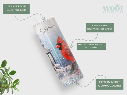 Personalized Cardinal Bird Tumbler - Gift for Cardinal Lovers and Winter