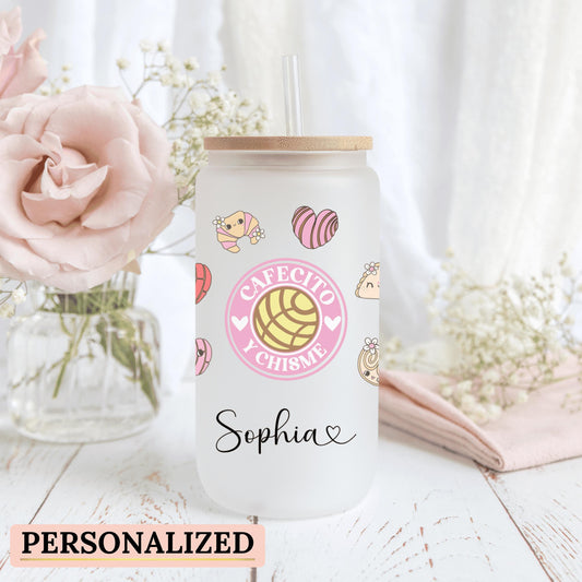Personalized Cafecito Y Chisme Glass Tumbler - Cute Coffee Cup for Concha Lovers