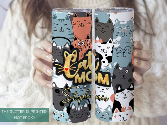 Personalized Cat Mom Tumbler - Custom Cat Mama Cup | Gift for Cat Lovers