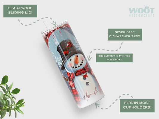 Personalized Christmas Snowman Tumbler - Cute Winter Gift for Her