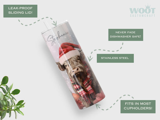 Personalized Christmas Highland Cow Tumbler - Winter Gift for Cow Lovers