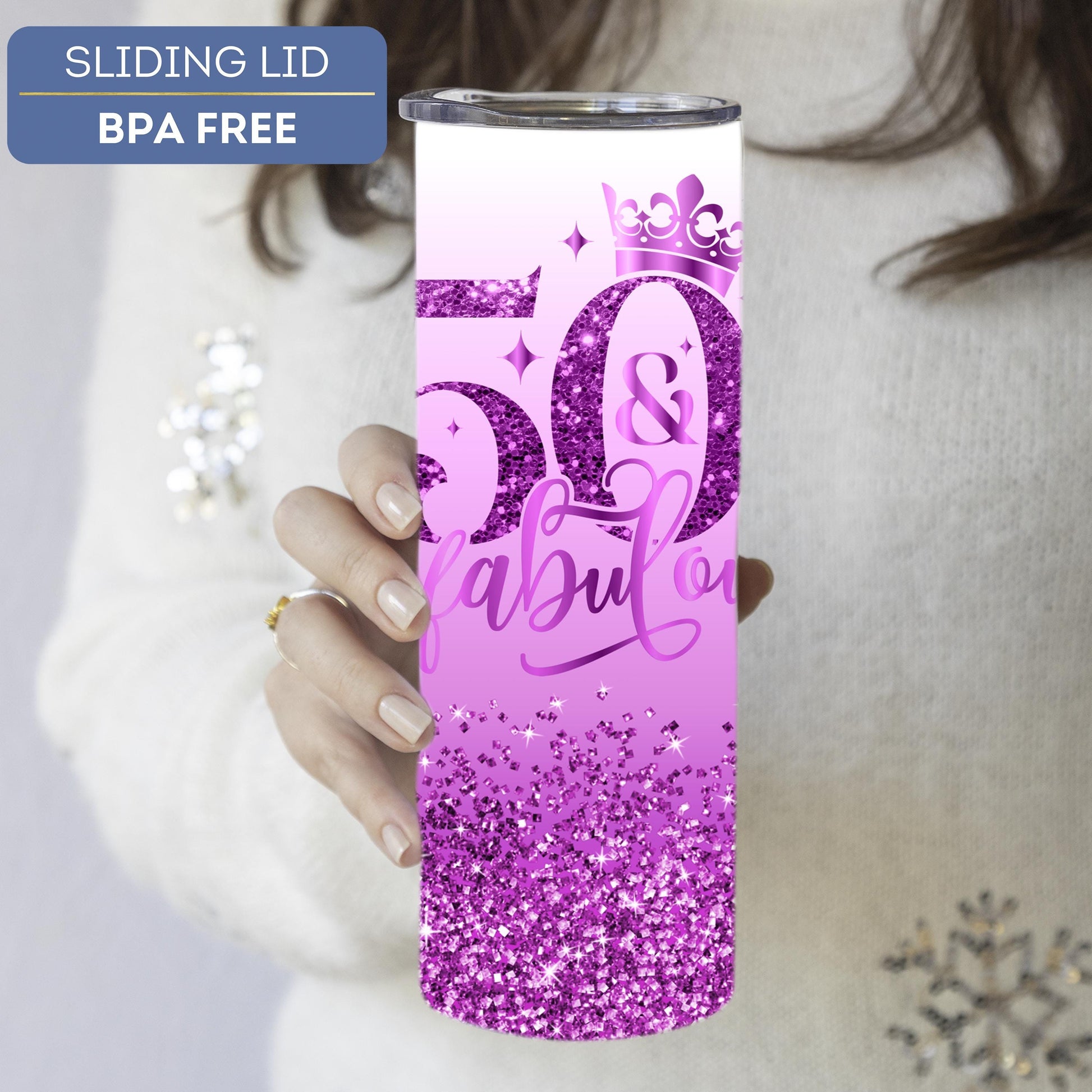Personalized 50th Birthday Tumbler - Fabulous 50 Glitter Cup Gift for Her