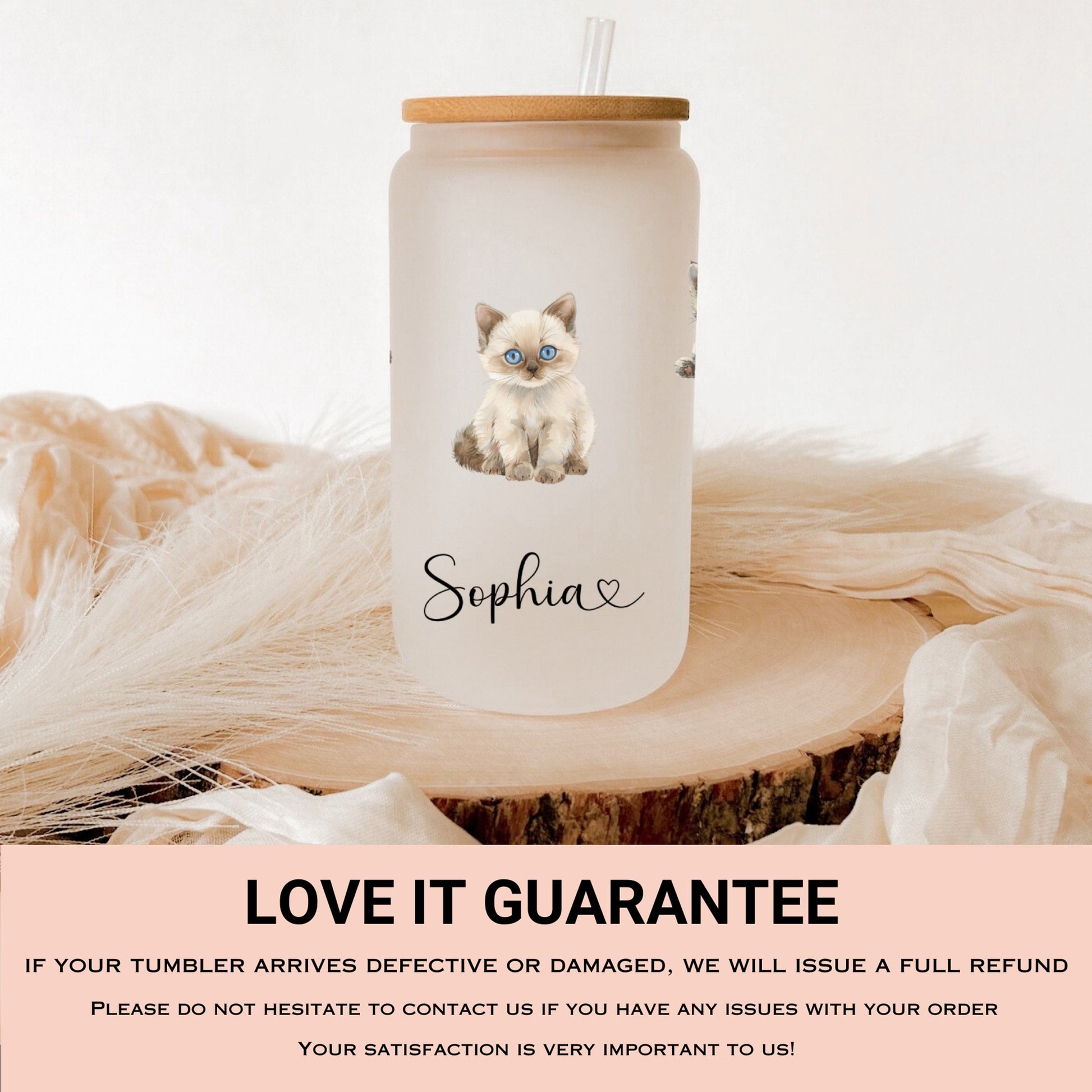Personalized Cat Frosted Glass Cup - Custom Iced Coffee Tumbler for Cat Lovers