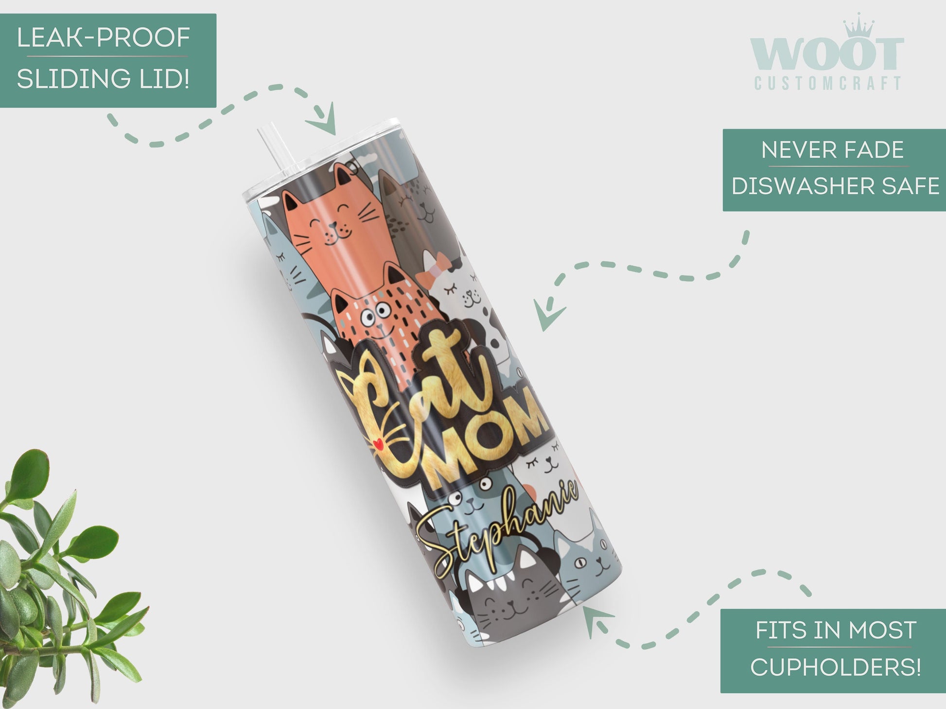 Personalized Cat Mom Tumbler - Custom Cat Mama Cup | Gift for Cat Lovers