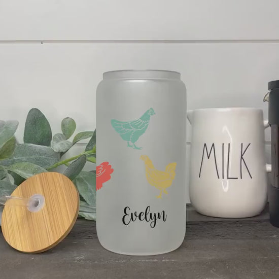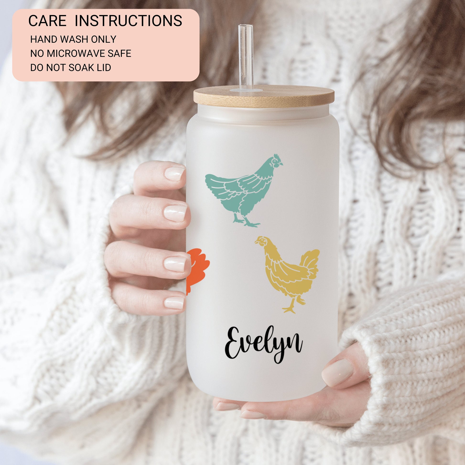 Personalized Chicken Frosted Glass Tumbler - Custom Iced Coffee Cup Gift