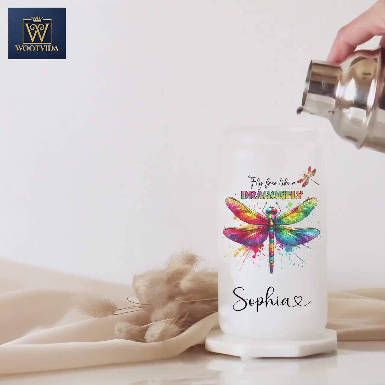 Personalized Dragonfly Frosted Glass Tumbler - Custom Fly Free Iced Coffee Cup
