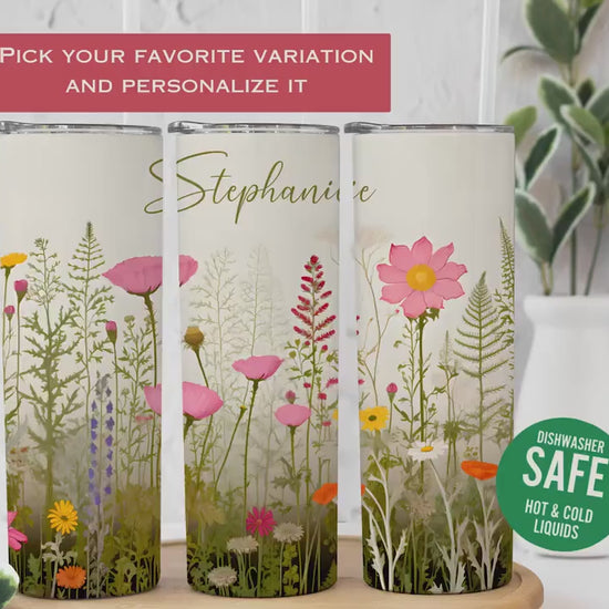 Floral Tumbler Personalized, Floral Tumbler Gift For Her, Floral Name Tumbler, Wildflower Tumbler Gift For Women, Custom Name Floral Tumbler