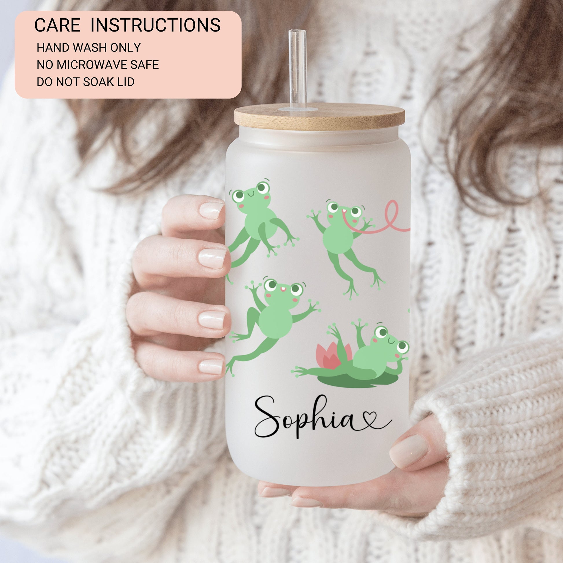 Personalized Frog Frosted Glass Tumbler - Custom Iced Coffee Cup for Frog Lovers