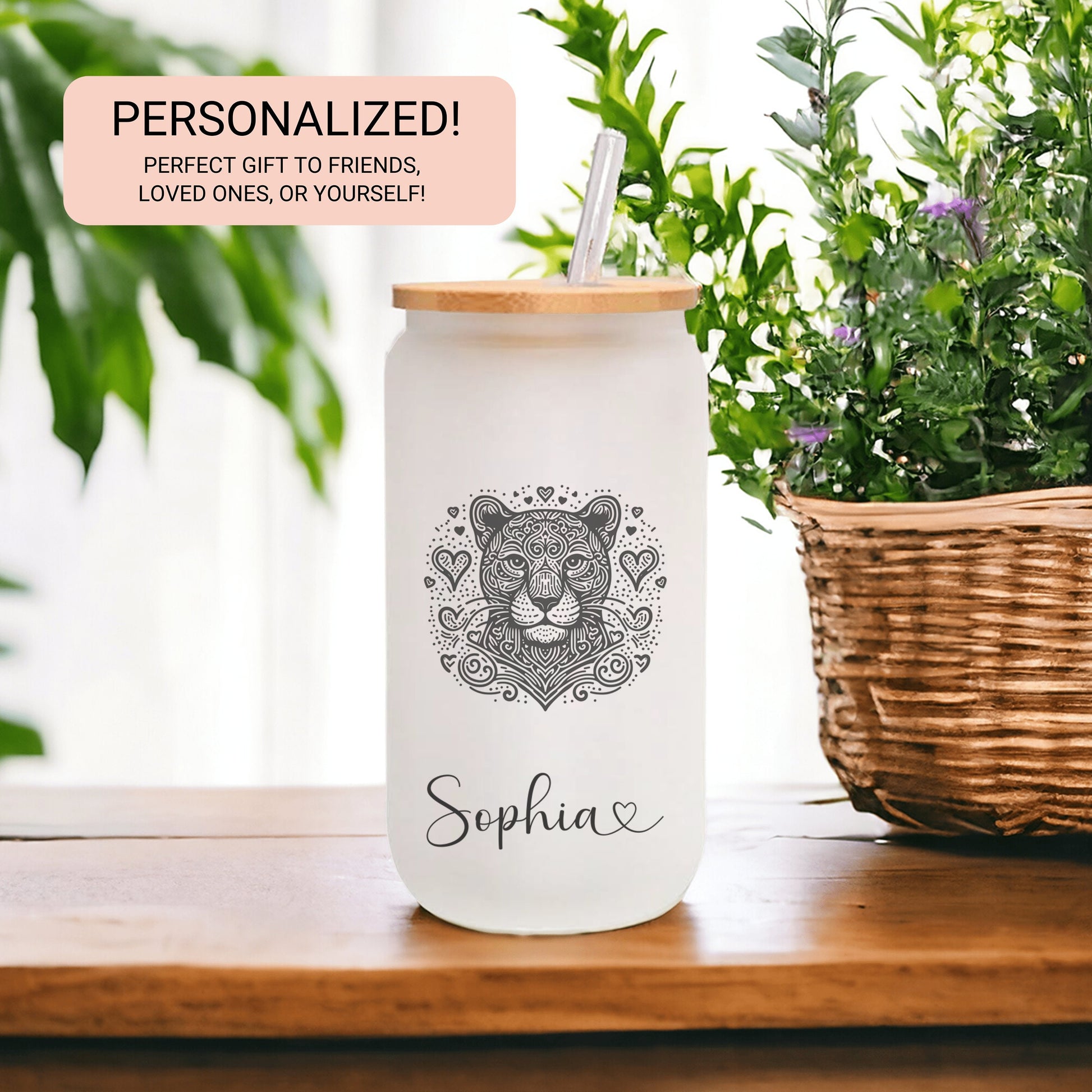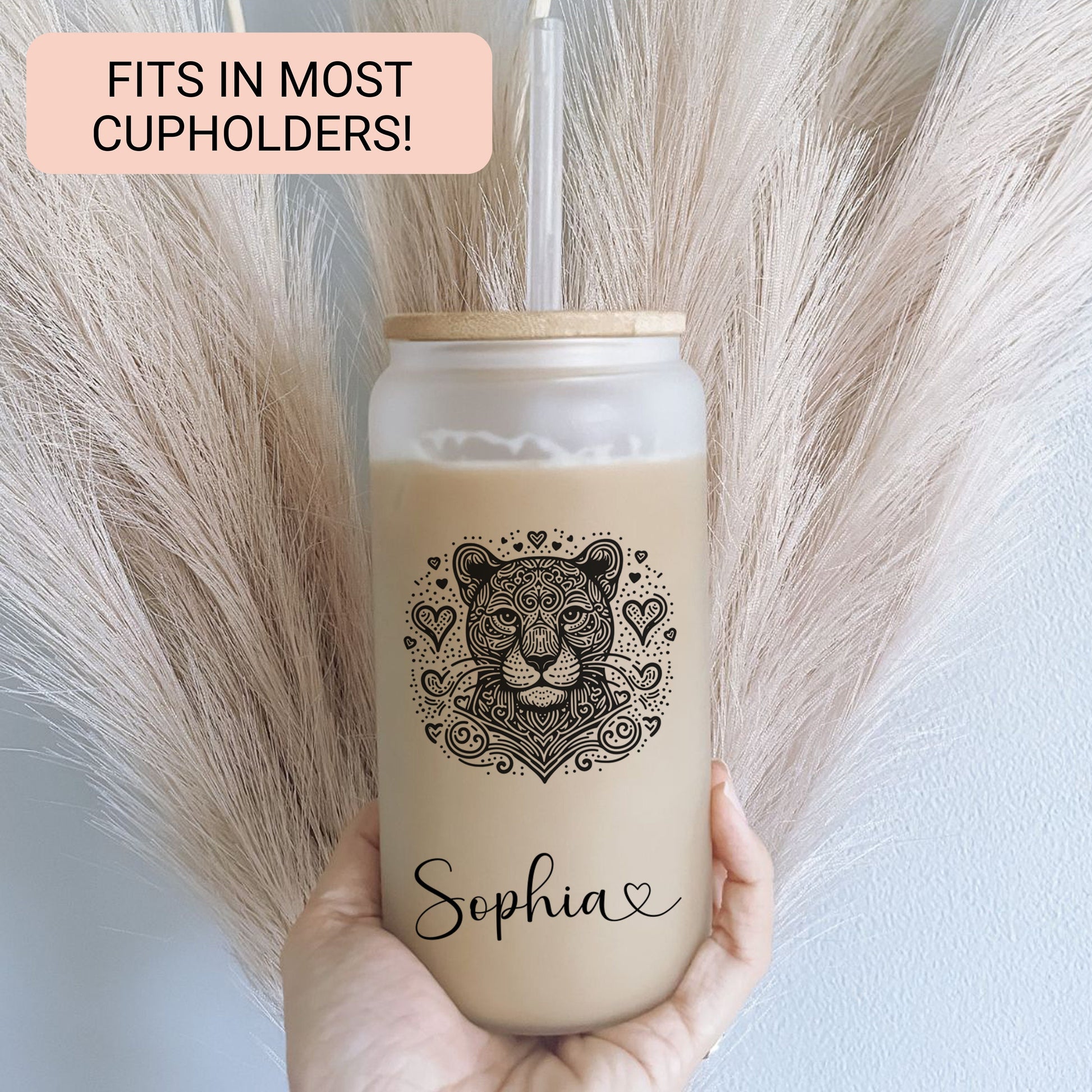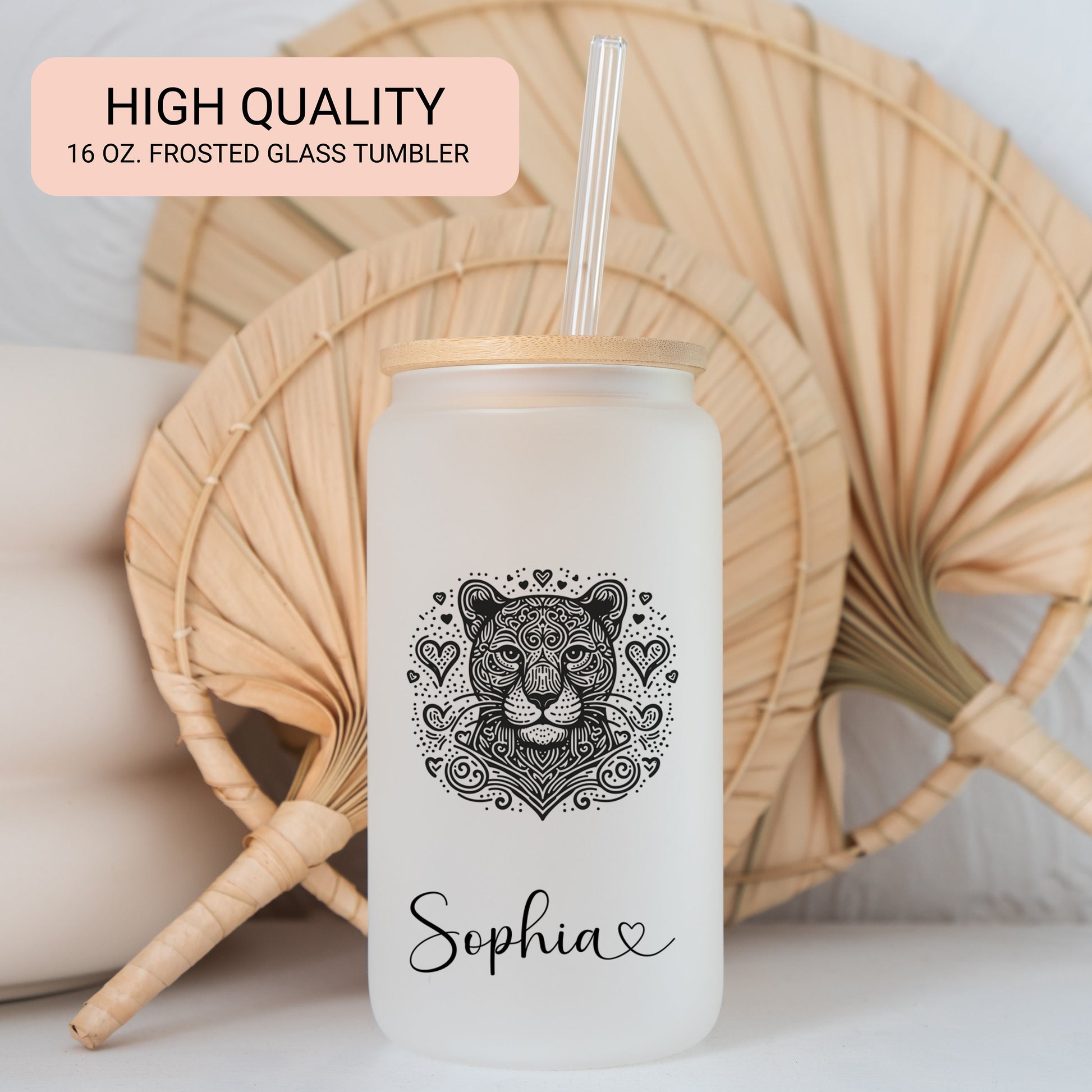Personalized Jaguar Frosted Glass Cup - Custom Iced Coffee Tumbler for Jaguar Lovers