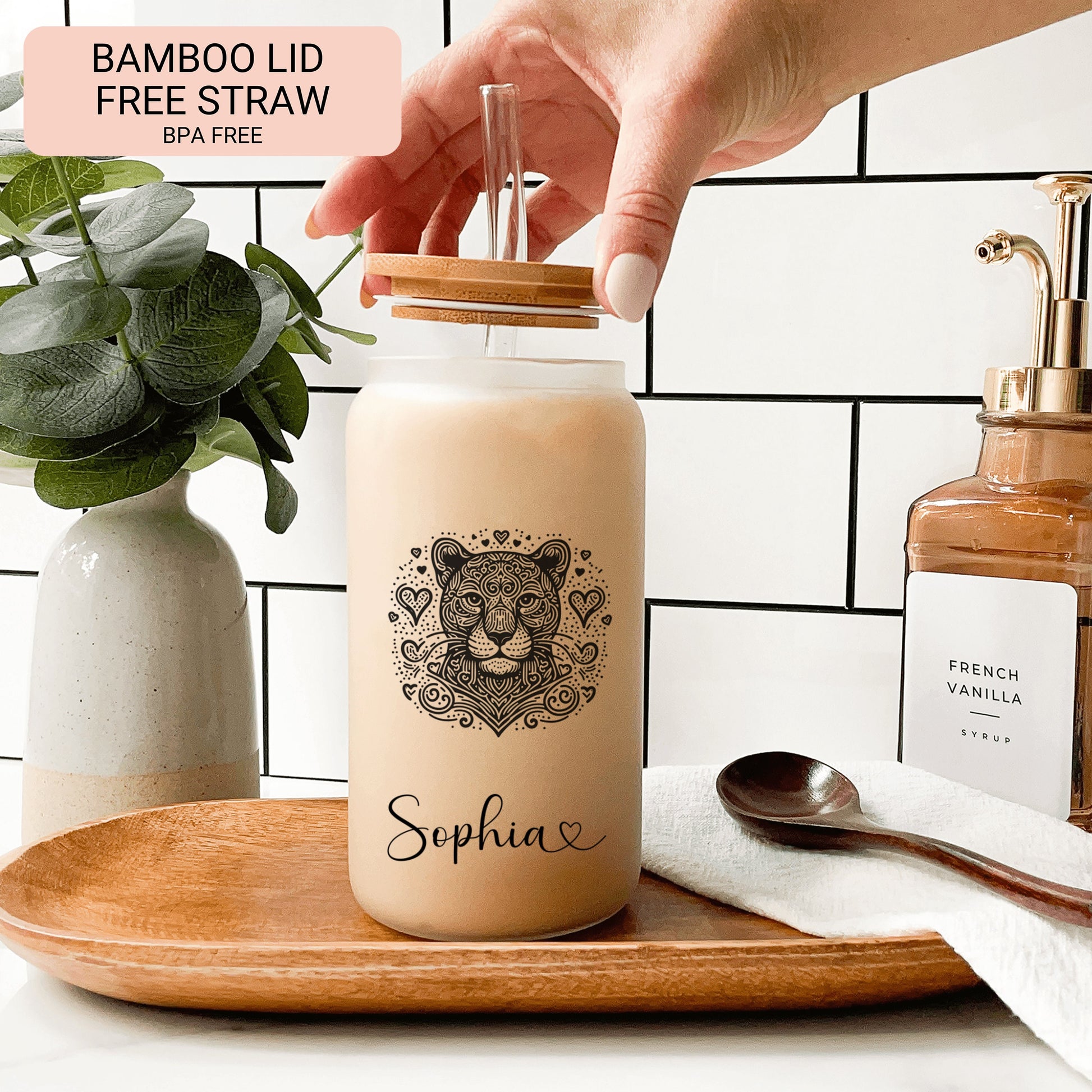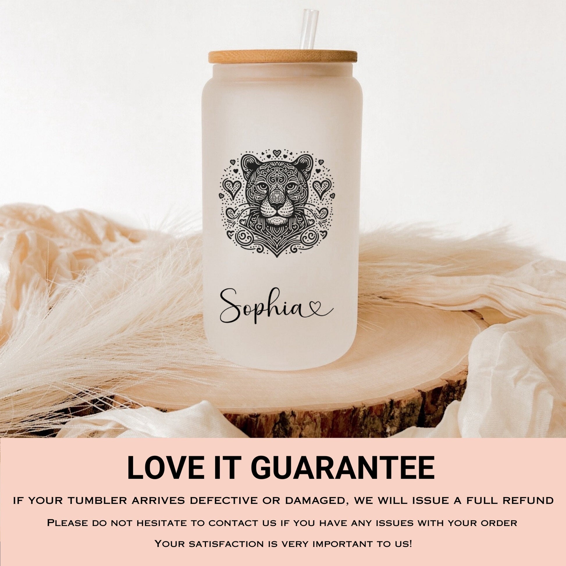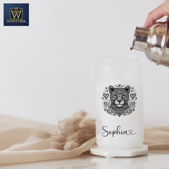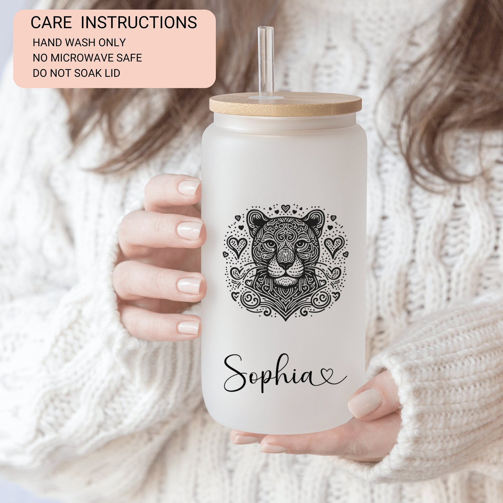Personalized Jaguar Frosted Glass Cup - Custom Iced Coffee Tumbler for Jaguar Lovers