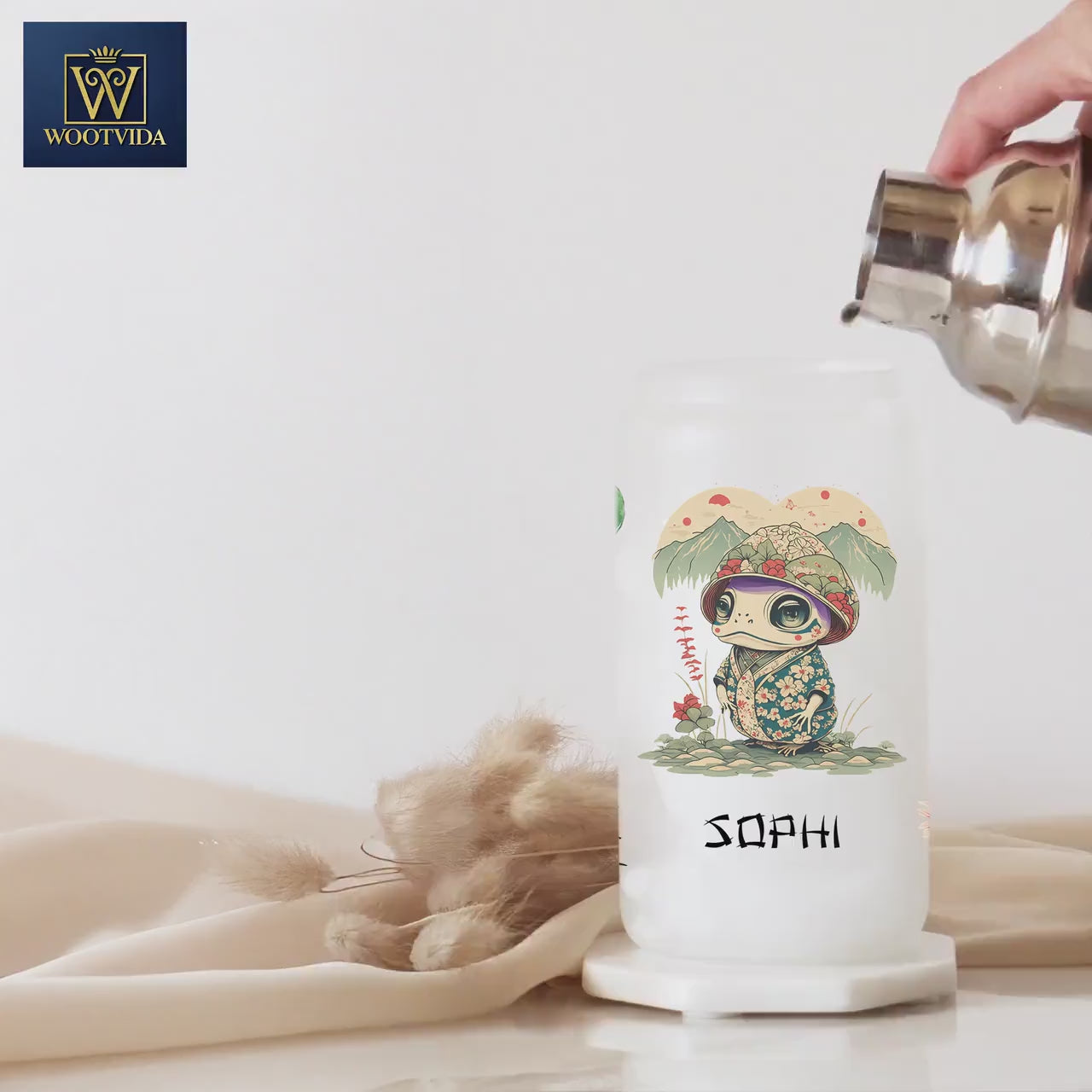 Personalized Japanese Frog Glass Cup - Unique Custom Iced Coffee Gift