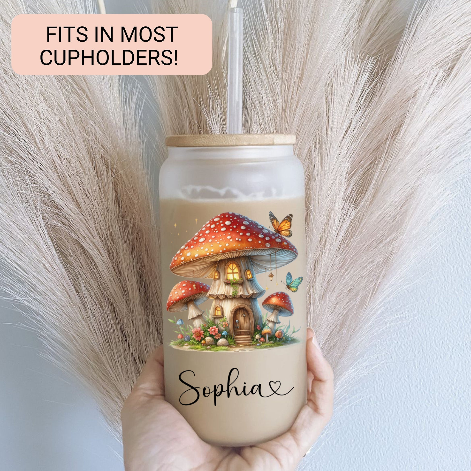 Personalized Mushroom Frosted Glass Cup - Custom Iced Coffee Tumbler