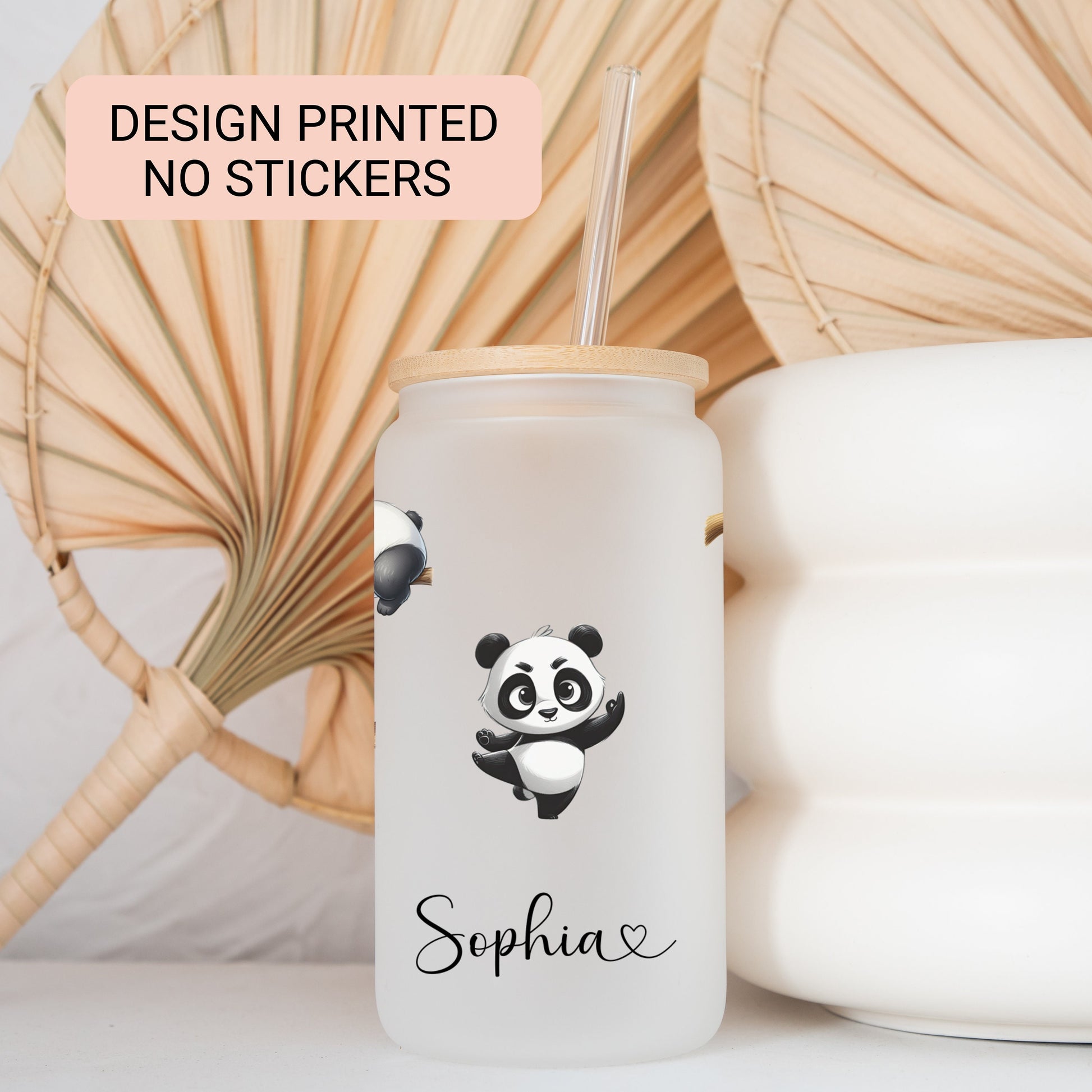 Personalized Frosted Panda Glass Cup - Custom Iced Coffee Tumbler for Panda Lovers