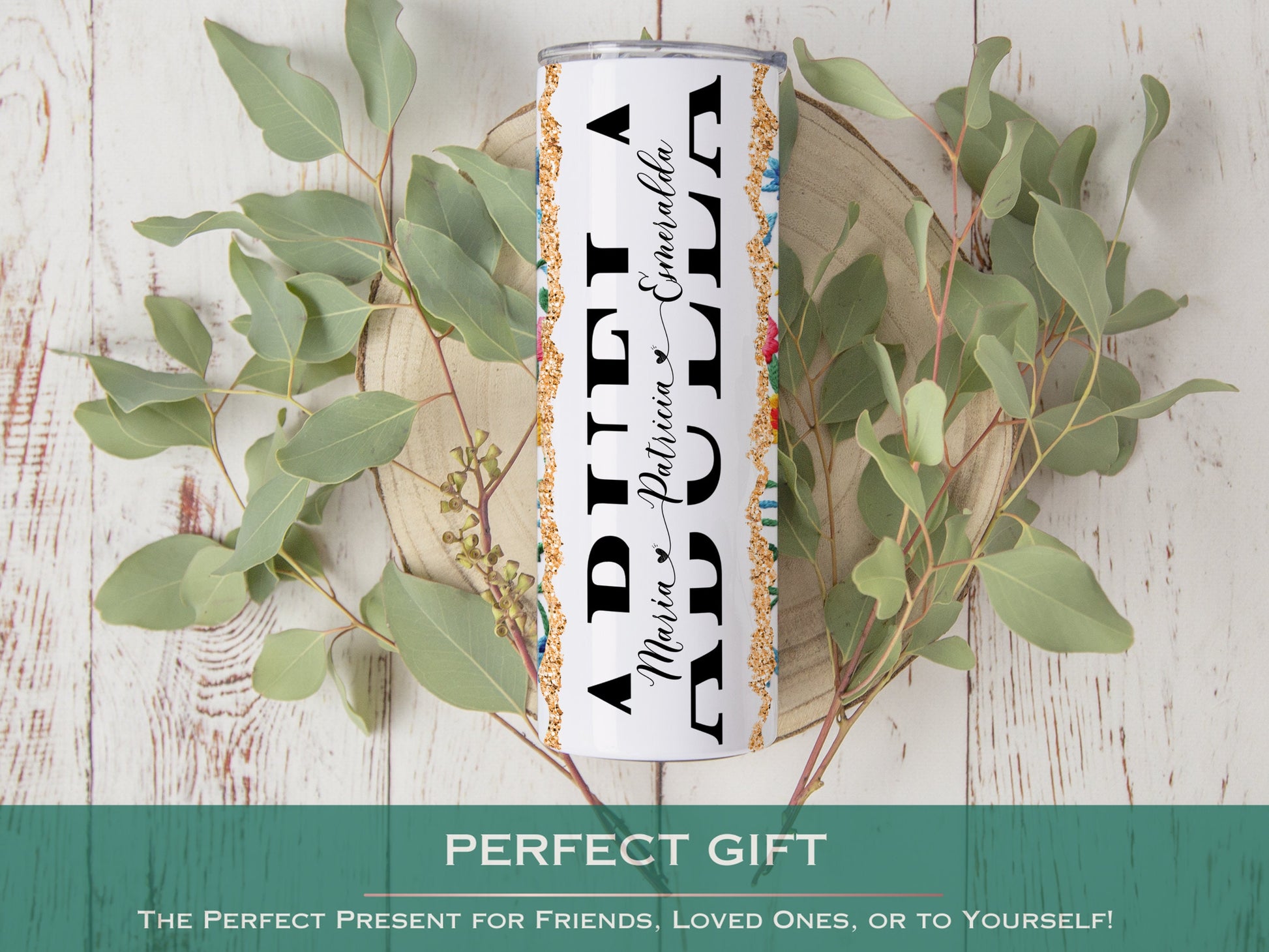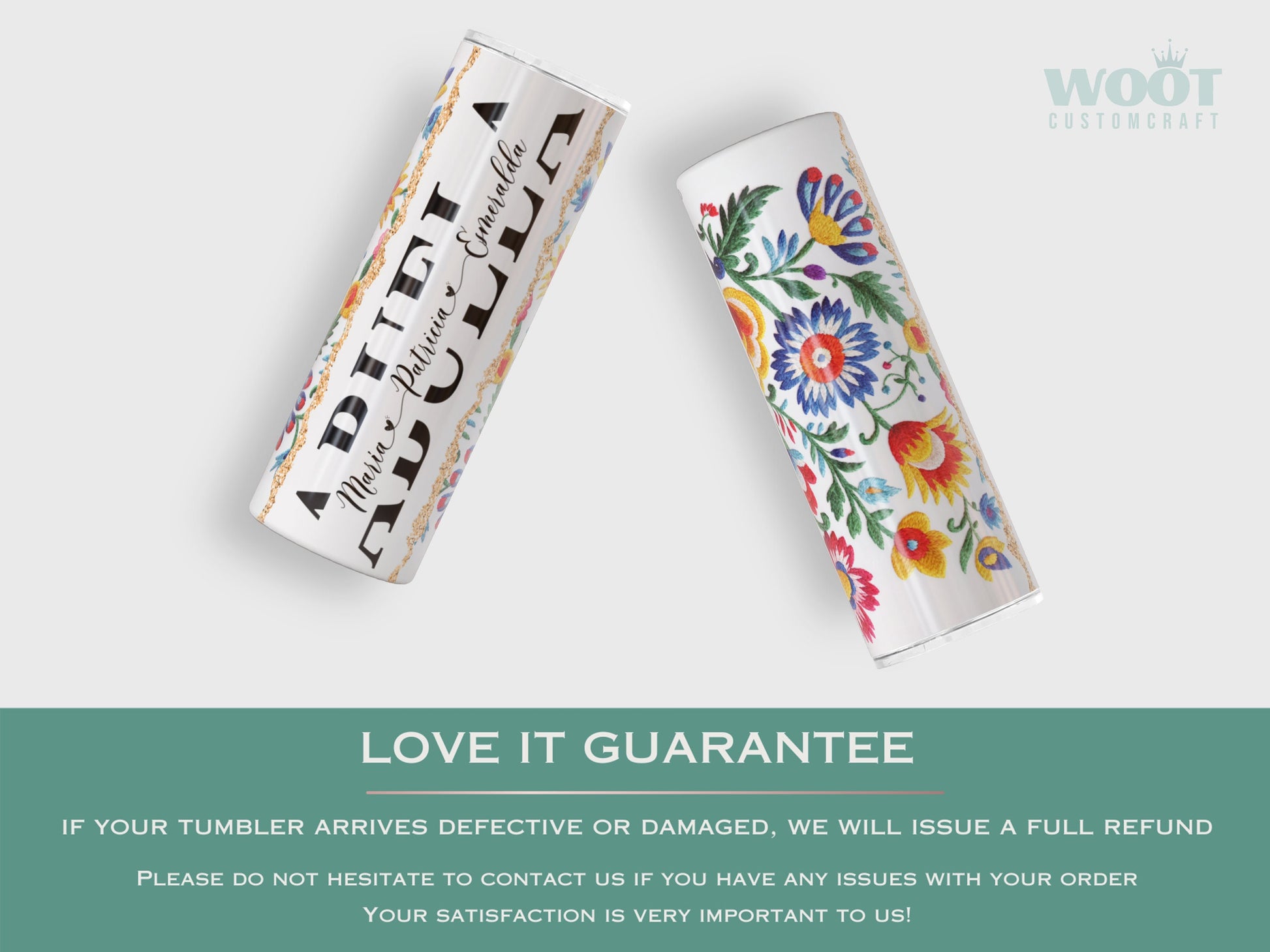 Personalized Abuela Tumbler - Custom Mexican Embroidery Travel Cup with Grandkids' Names