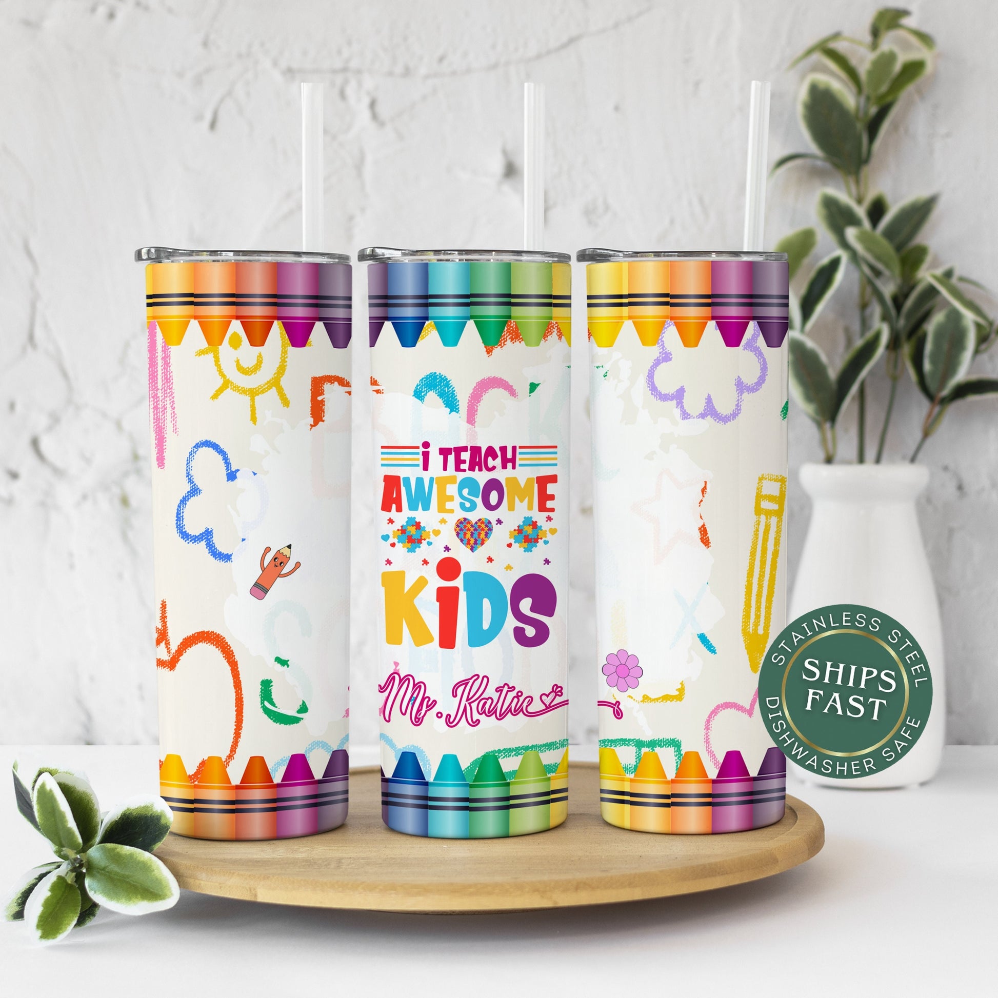 Personalized Autism Awareness Teacher Tumbler - Gift for Educators of Awesome Kids