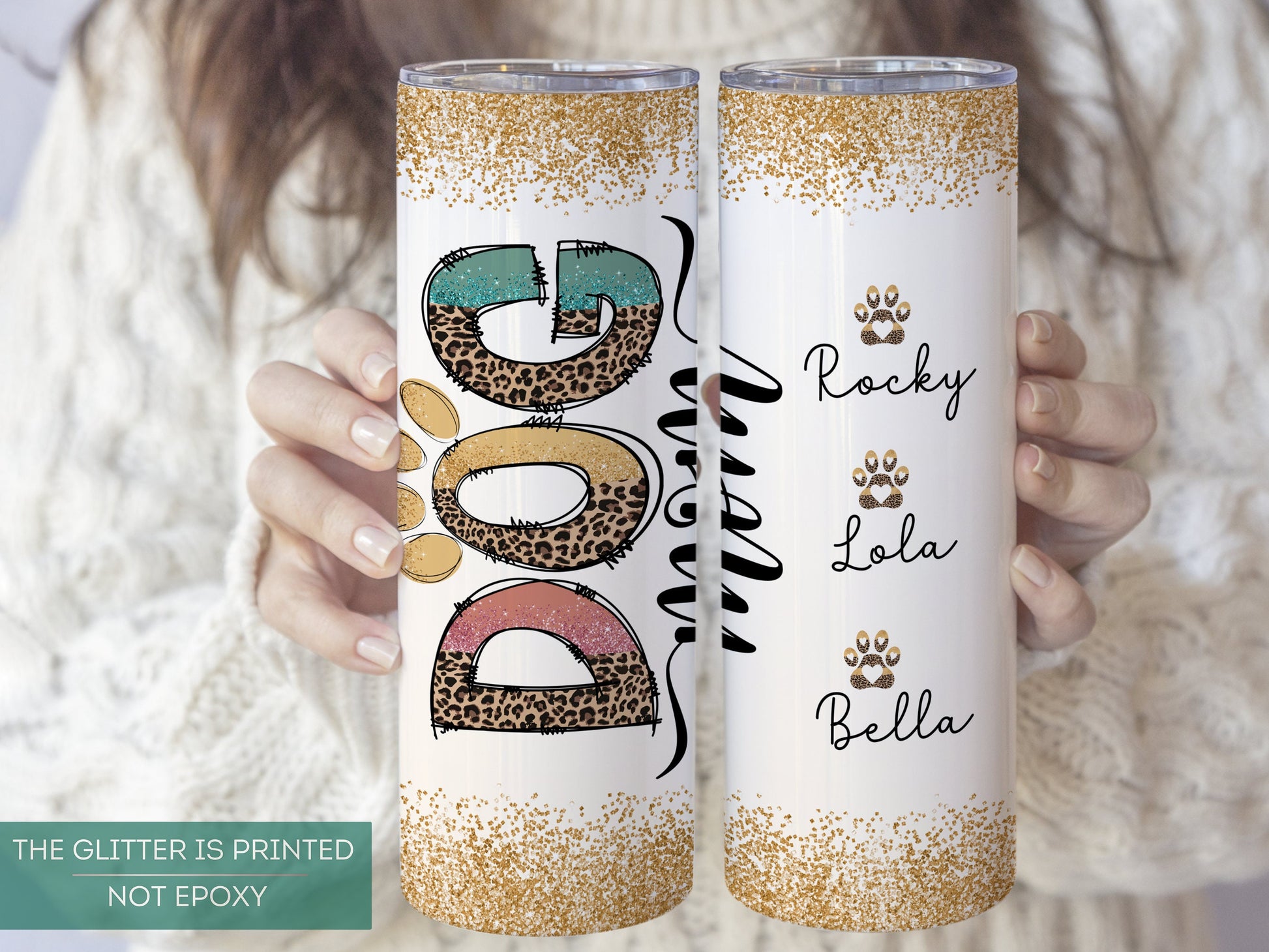 Personalized Dog Mom Travel Mug - Cheetah Print Tumbler for Dog Lovers