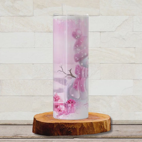 Personalized Pink Snowman Christmas Tumbler - Cute Holiday Gift for Her