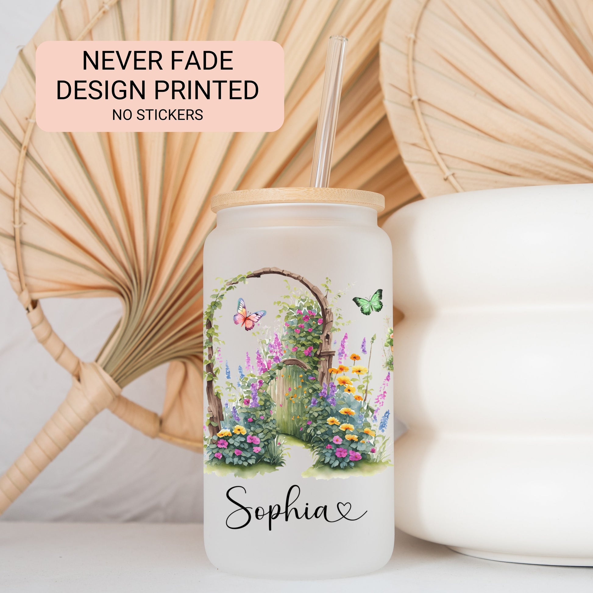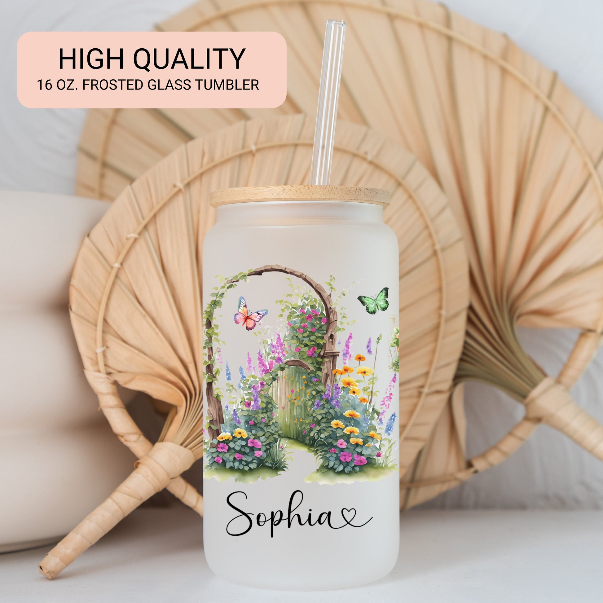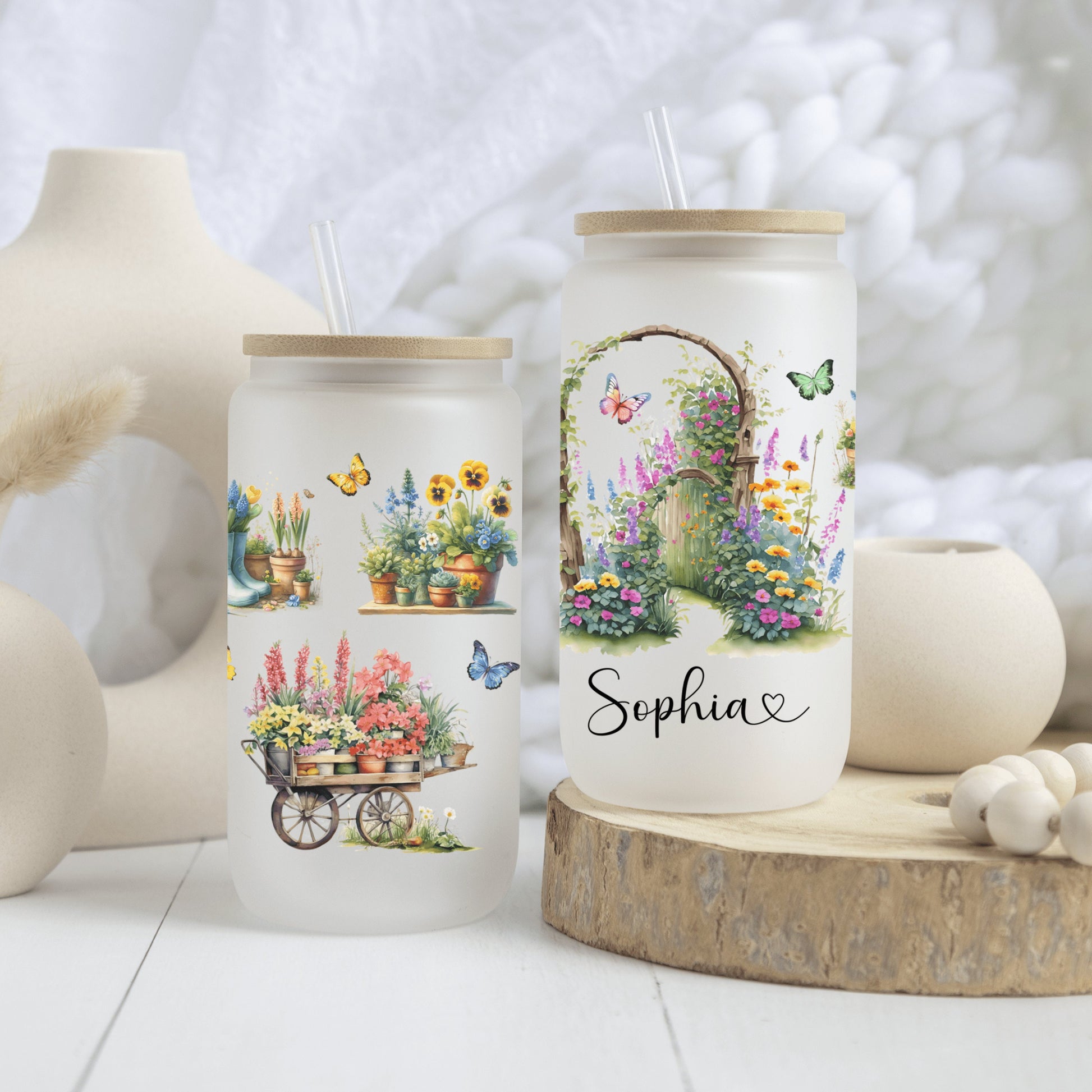 Personalized Plant Lover Frosted Glass Cup - Custom Iced Coffee Tumbler