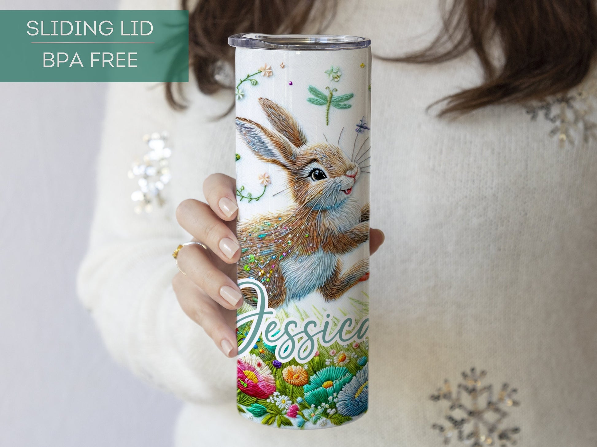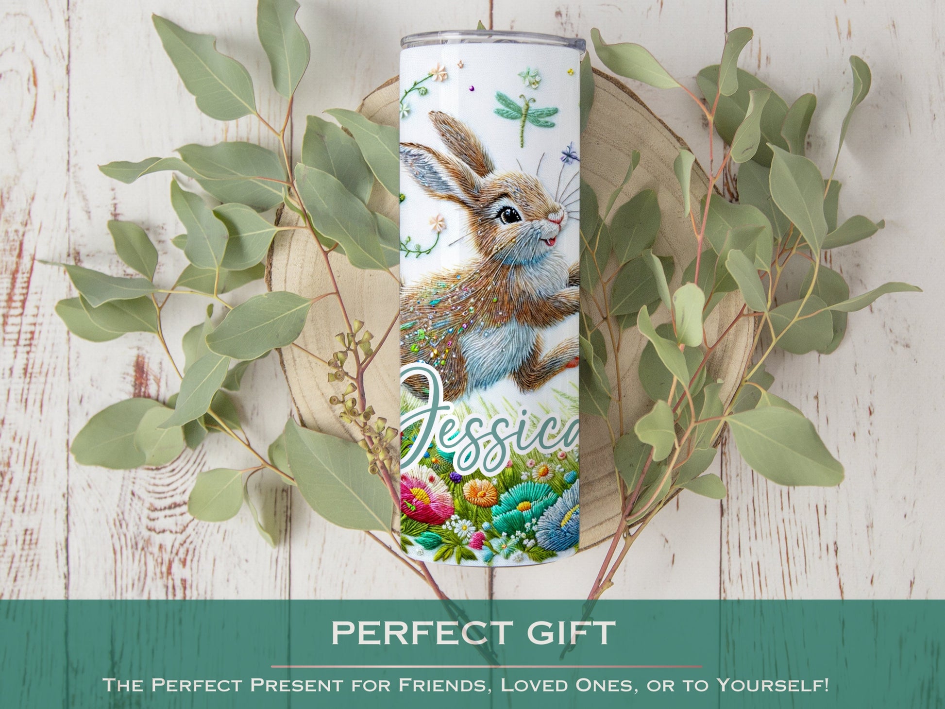 Personalized Rabbit Tumbler - Floral Gift for Rabbit Lovers and Easter