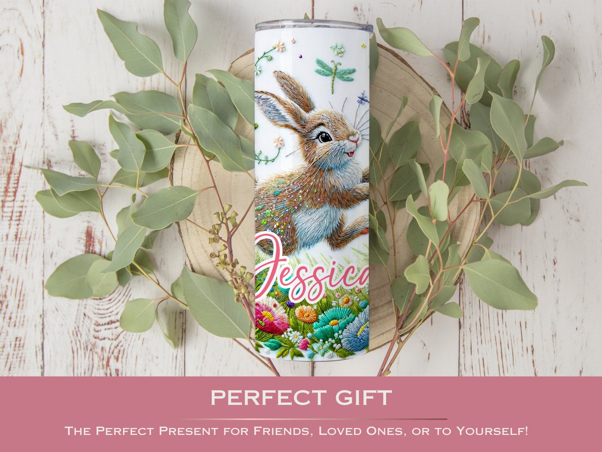 Personalized Rabbit Tumbler - Floral Easter Gift for Rabbit Lovers