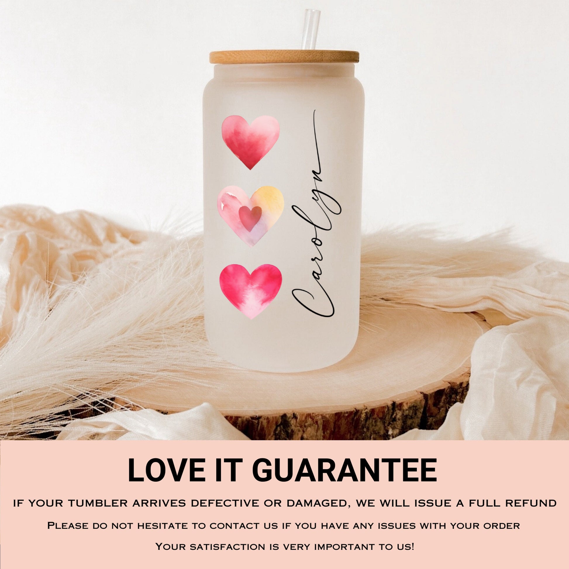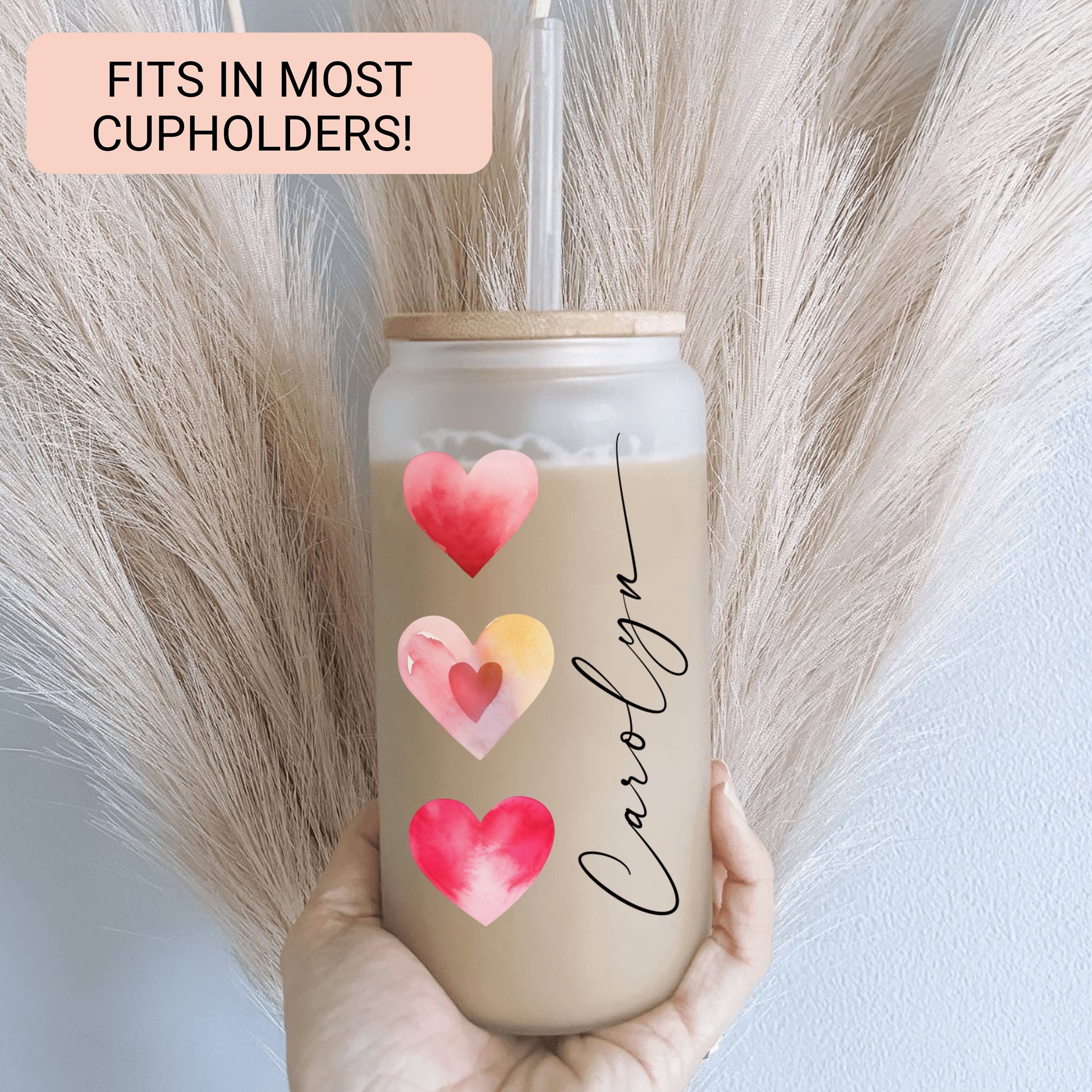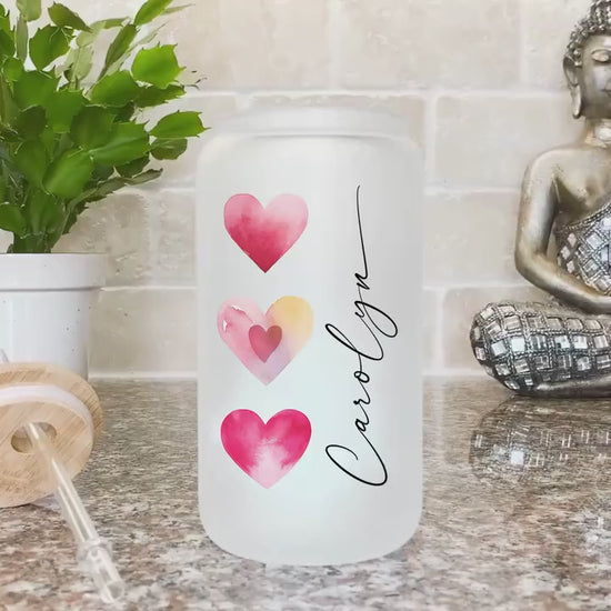 Red Heart Cup Personalized, Red Heart Glass Cup, Custom Red Heart Frosted Glass Cup, Red Heart Glass Tumbler, Red Heart Iced Coffee Cup Gift