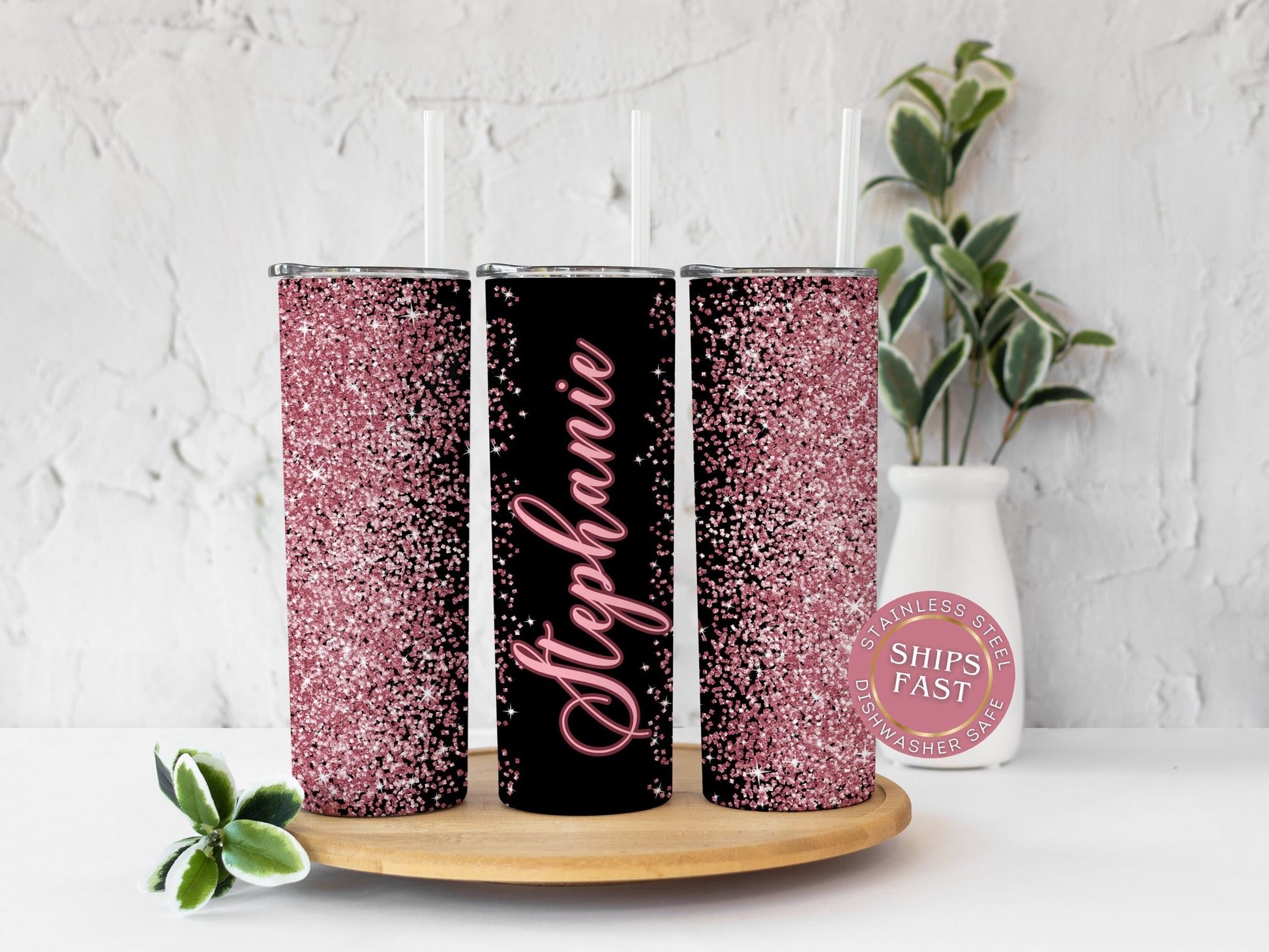Rose Gold Ombre Glitter Tumbler - Sparkling Gift for Her or Mom