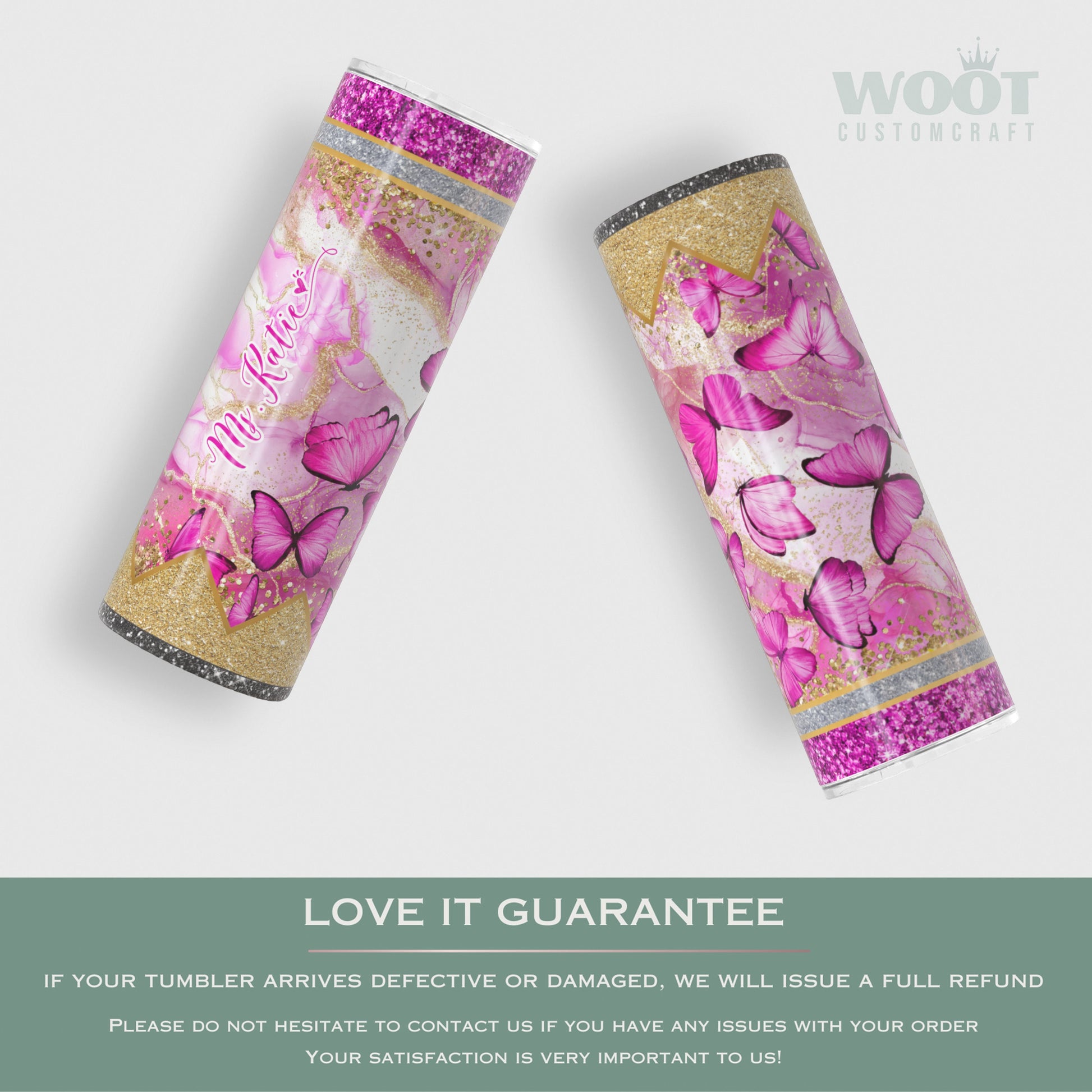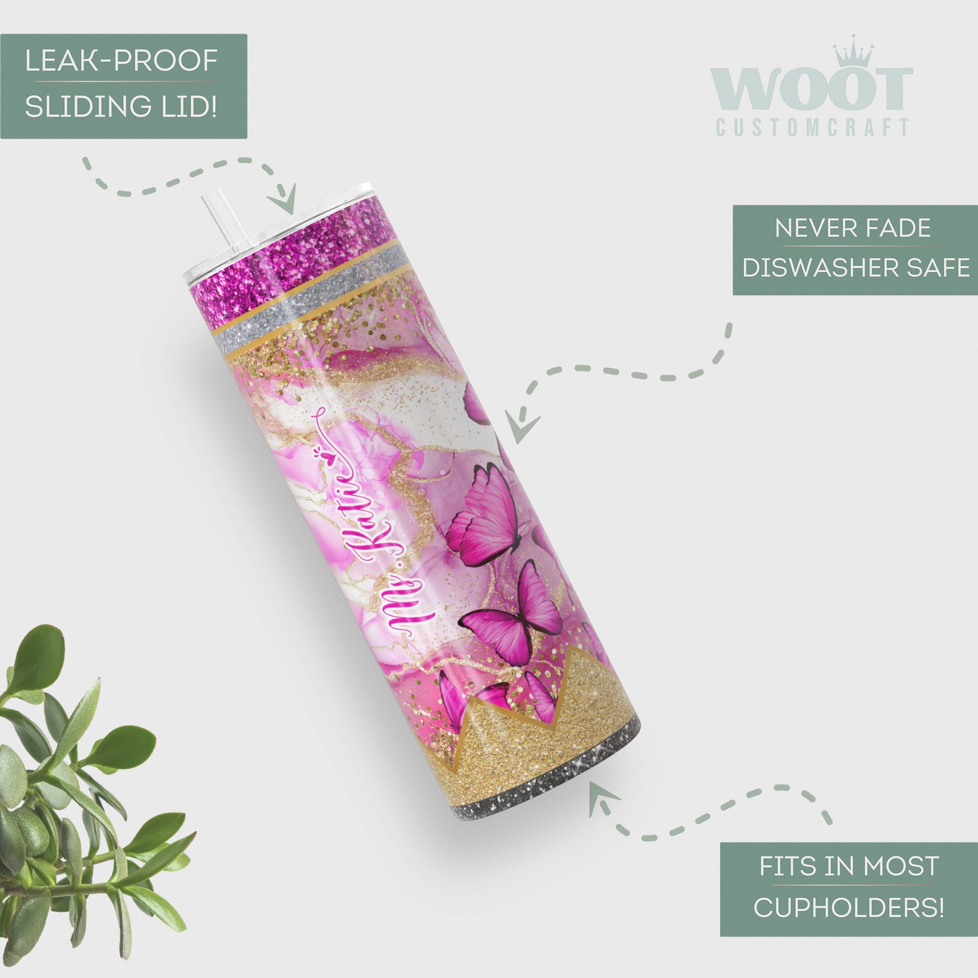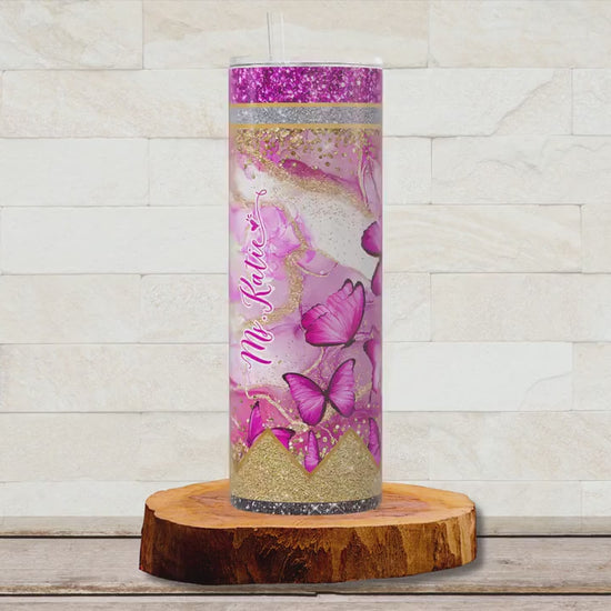 Personalized Teacher Butterfly Glitter Tumbler - Pink Pencil Travel Cup Gift for Educators