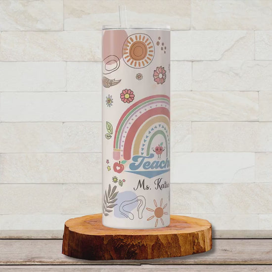 Personalized Retro Teacher Tumbler with Name - Thank You Gift for Teacher Appreciation
